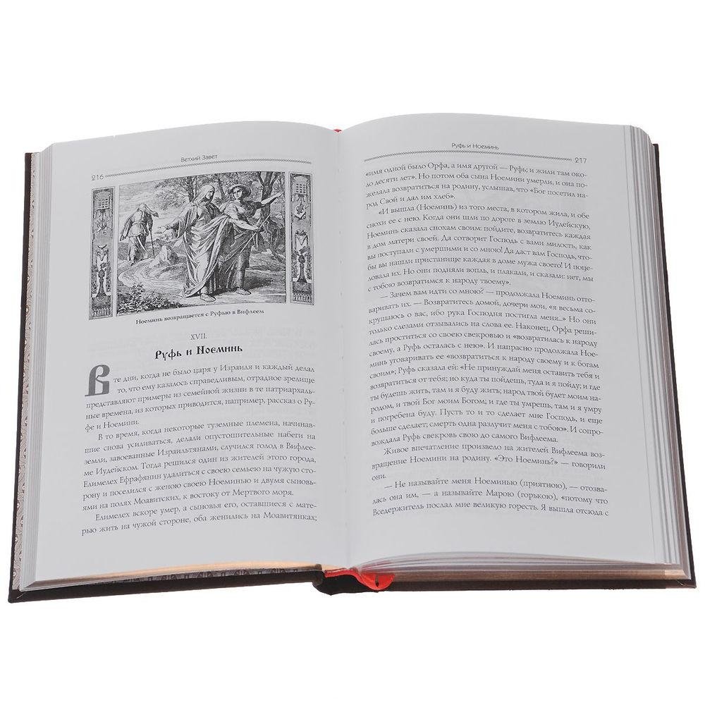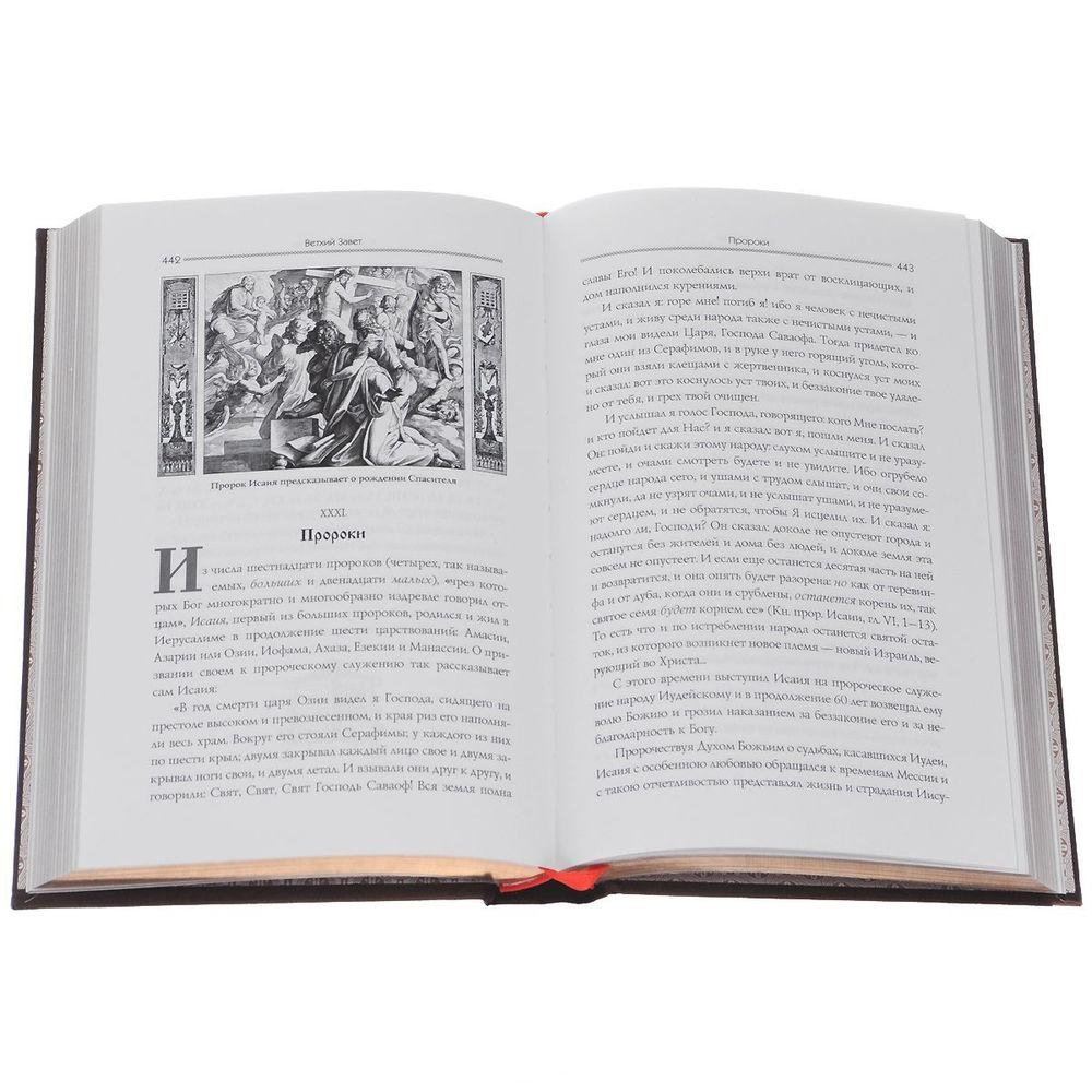 Подарочное издание с золотым обрезом. В начале глав кратко излагается их содержание. Этот текст, набранный мелким шрифтом, не является библейским, но печатается, чтобы читатель мог легче находить нужное место в Писании.