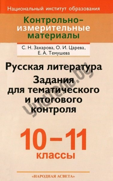 Пособие содержит разработки контрольно-измерительных материалов для проведения тематического и итогового контроля по русской литературе в 10-11 классах. КИМ, предложенные в пособии, представляют собой задания, сгруппированные по темам в соответствии с действующей программой по русской литературе. Ориентированы на содержание учебников для 10-го и 11-го классов. Предлагаемые КИМ могут использоваться также на факультативных занятиях и для проведения школьных олимпиад по русской литературе.