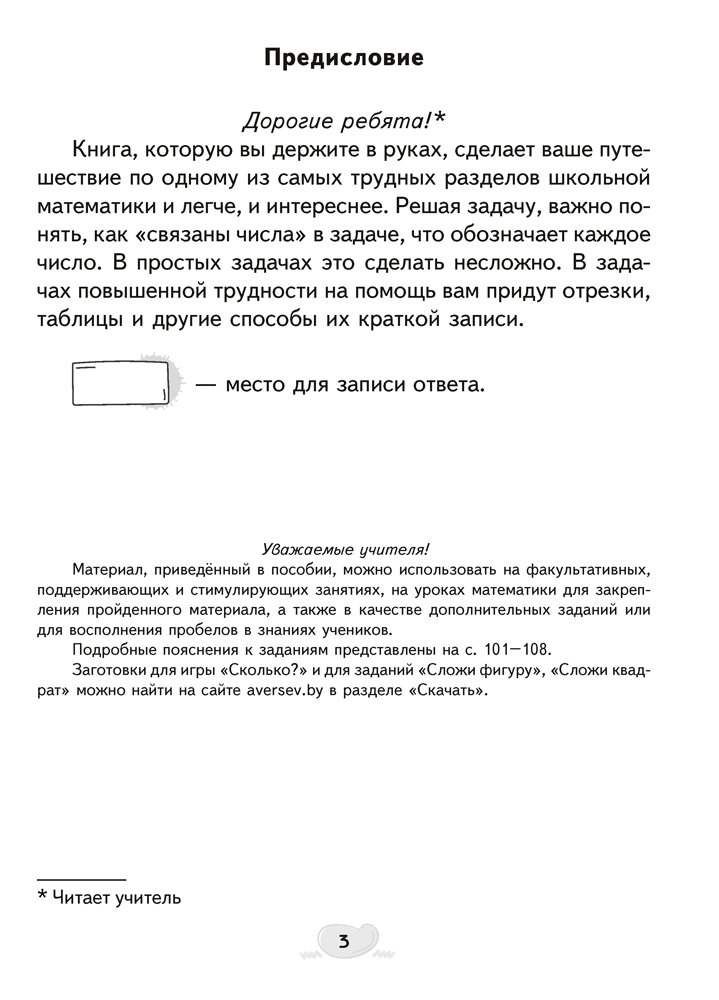 Методические рекомендации по работе с тетрадью даны в пособии для учителей «Факультативные занятия. Математика. 1 класс. Решение текстовых задач», которое можно найти в электронном виде в приложении Aversev Media