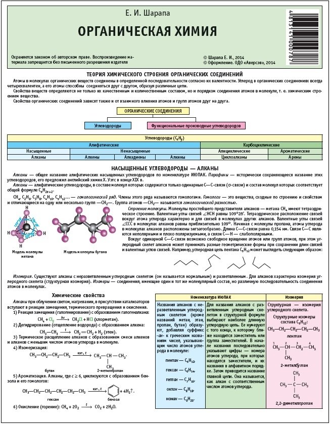Буклет составлен на основе учебной программы для учреждений общего среднего образования. В нем содержится тщательно отобранный и детально систематизированный материал, являющийся основой для успешного изучения школьного курса химии; представлен в виде оригинальных подробных схем и таблиц с текстовыми и графическими пояснениями и многочисленными примерами уравнений реакций. Данное пособие будет содействовать запоминанию основной терминологии, пониманию существенных признаков различных понятий, усвоению фактического материала, обобщению знаний; является незаменимым дополнением к школьным учебникам и может быть использован при изучении школьного курса химии на базовом, профильном и углубленном уровнях, для систематизации знаний при подготовке к олимпиадам по химии, экзаменам и к централизованному тестированию.