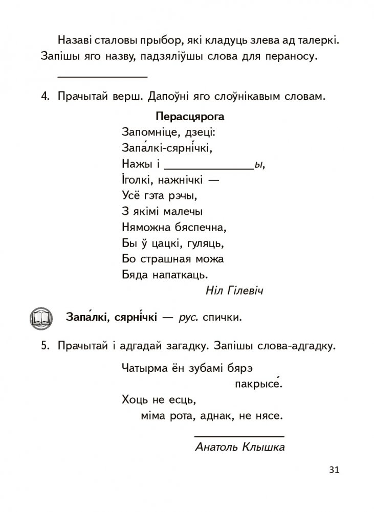 Сшытак прызначаны для выкарыстання на ўроках беларускай мовы ў 2 класе ўстаноў агульнай сярэдняй адукацыі з рускай мовай навучання. Займальныя заданні дапамогуць вучням засвоіць правапіс слоўнікавых слоў, навучыцца правільна выкарыстоўваць іх у маўленні.