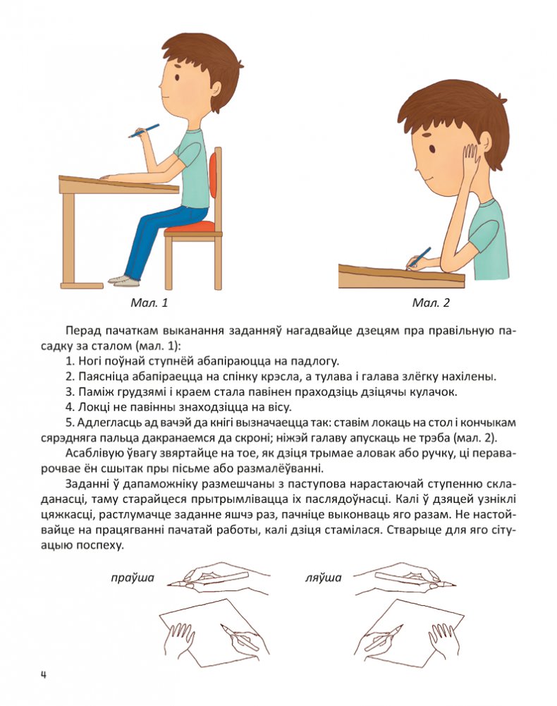 Вучэбны наглядны дапаможнік накіраваны на рэалізацыю задач адукацыйнай вобласці «Мастацтва» (выяўленчая дзейнасць, падрыхтоўка рукі да пісьма) вучэбнай праграмы дашкольнай адукацыі. Графічныя заданні, прапанаваныя ў дапаможніку, спрыяюць фарміраванню ў выхаванцаў старшай групы (ад 5 да 7 гадоў) пачатковых графічных навыкаў, развіццю дакладных, каардынаваных рухаў рукі, прасторавай арыентацыі, а таксама пазнавальных працэсаў (памяці, увагі, уяўлення).