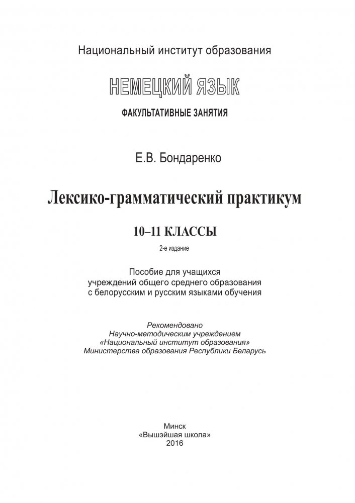 Немецкий язык. Факультативные занятия. Лексико-грамматический практикум. 10-11 классы. Пособие для учащихся