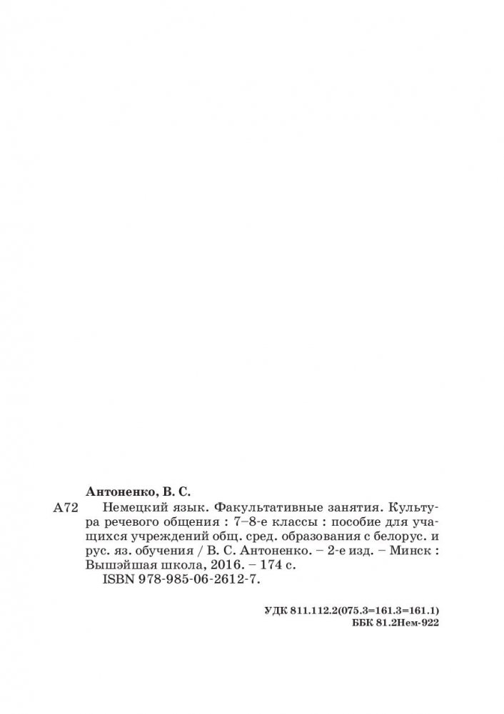 Немецкий язык. Факультативные занятия. Культура речевого общения. 7-8 класс. Пособие для учащихся