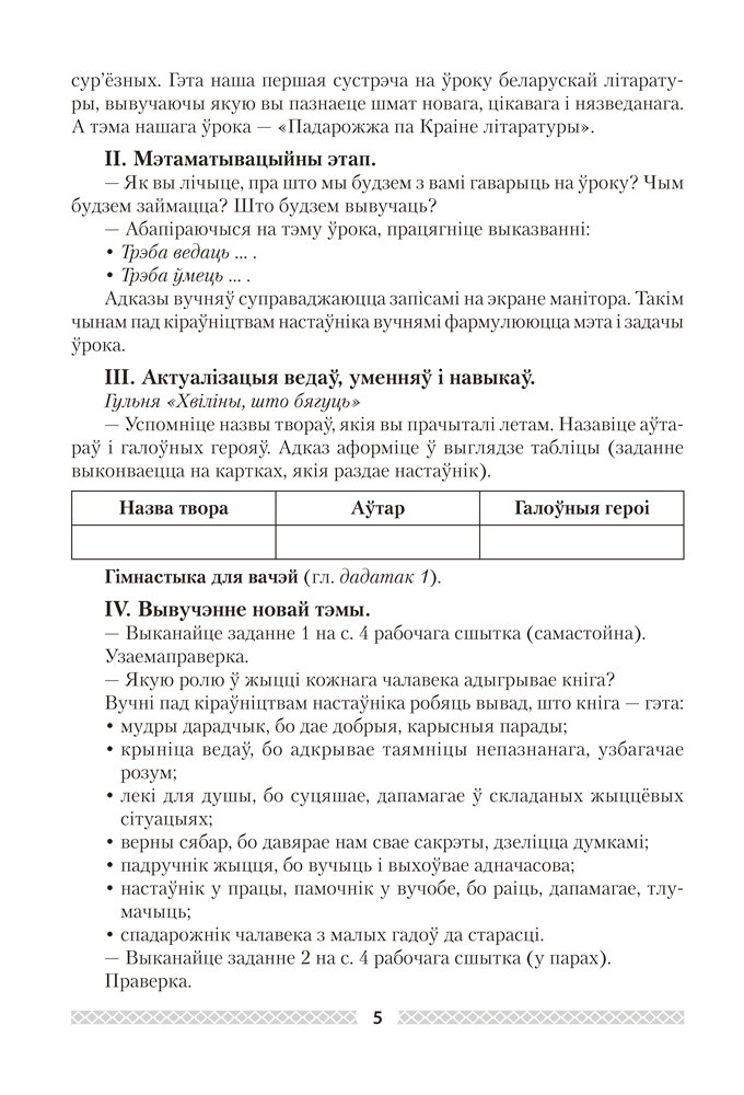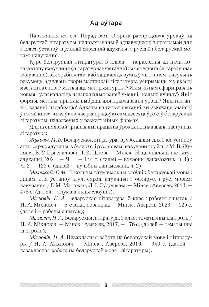 Выданне змяшчае метадычныя распрацоўкі ўрокаў беларускай літаратуры для 5 класа. Прадстаўлены матэрыял адпавядае вучэбнай праграме і дапаможа педагогам у арганізацыі і правядзенні заняткаў.