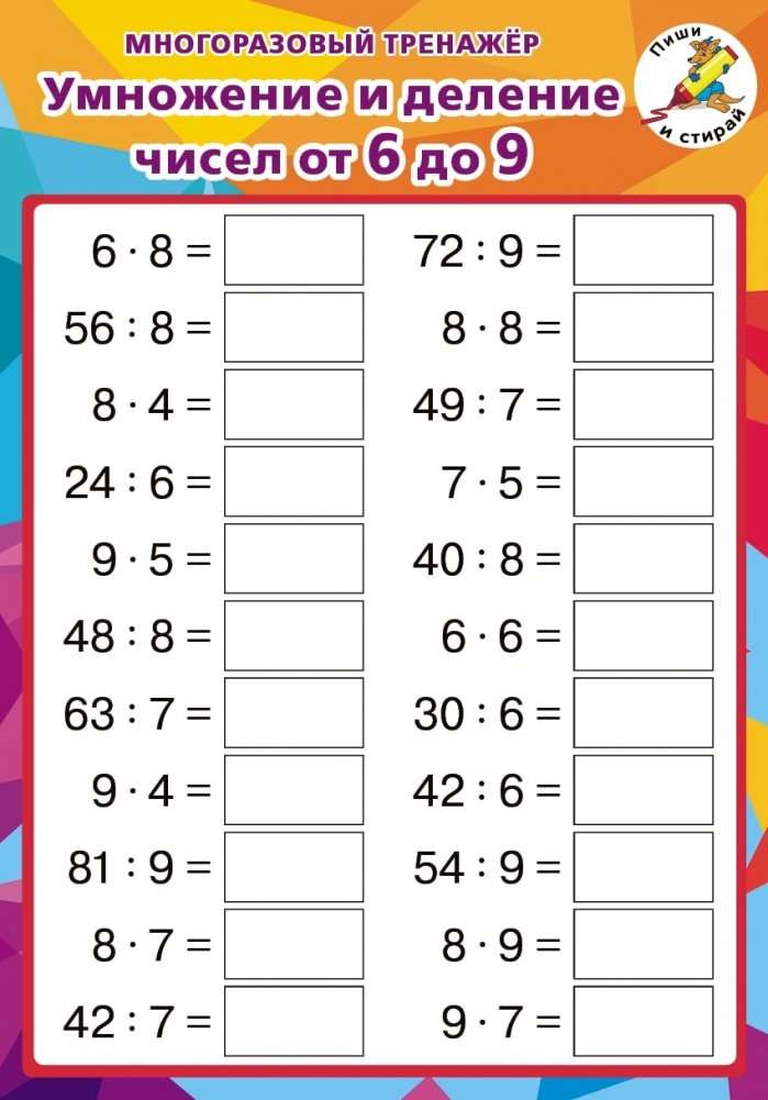 Умножение и деление чисел от 6 до 9. Многоразовый тренажер