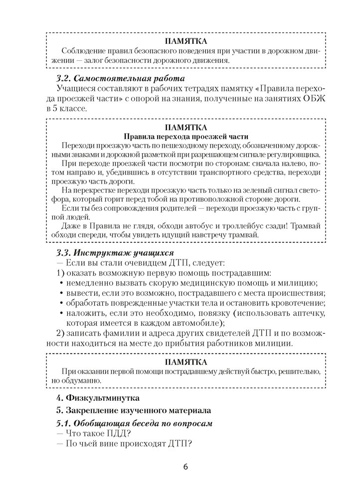 Пособие содержит методические разработки уроков по предмету «Основы безопасности жизнедеятельности» для 6 класса, которые соответствуют учебной программе. Представленный материал поможет педагогам в организации и проведении занятий.