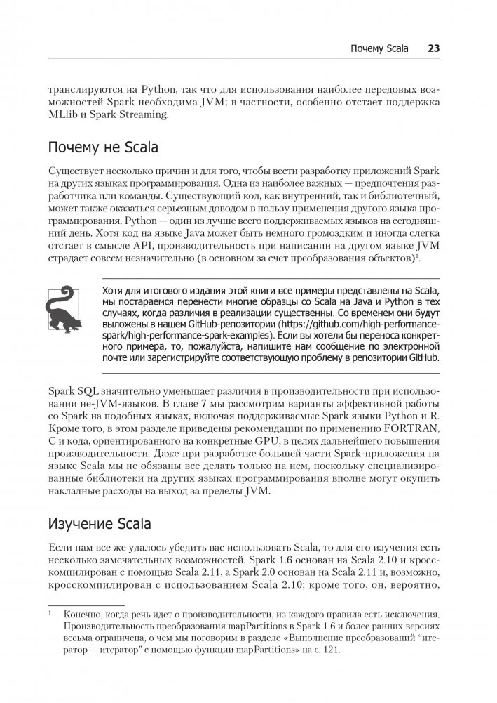 Если у вас уже есть положительный опыт использования Spark для решения небольших задач, но вы по-прежнему ломаете голову — где та самая непревзойденная производительность Spark, позволяющая перемалывать колоссальные объемы данных. — то эта книга для вас. Она расскажет, как эффективно использовать Spark для укрощения больших данных и вырасти из новичка в специалиста. Идеально подходит для программистов, инженеров по работе с данными, системных администраторов, обслуживающих крупномасштабные приложения.