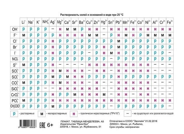Периодическая система Менделеева. Растворимость солей. Плакат ламинированный двусторонний