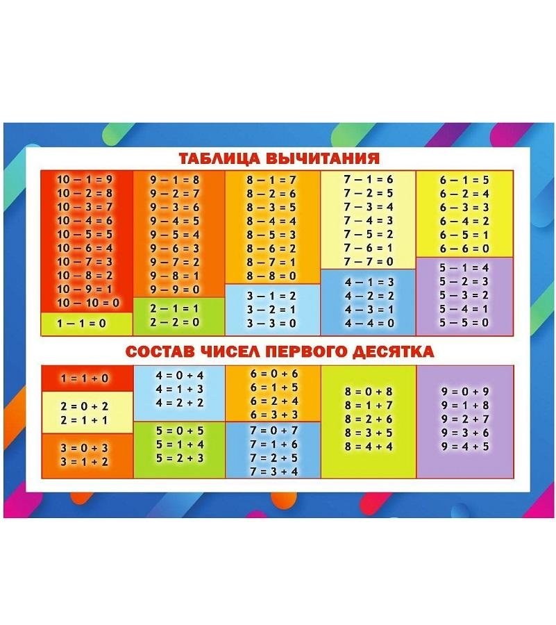 Таблица вычитания/Таблица сложения. Плакат ламинированный двусторонний