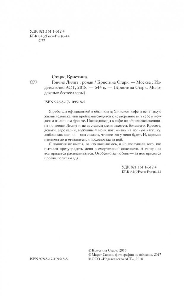 Однажды в дублинском кафе, где работает Скай Полански, появляется загадочная незнакомка по имени Лилит, которая предлагает Скай работу секретарем в своей клинике в Бостоне. Скай не из тех, кто готов к переменам, но, устав от неудач в личной жизни, она соглашается. Вскоре выясняется, что под прикрытием клиники скрывается весьма изощренный бизнес, способный дать все: красивую жизнь, роскошь и адреналин. Но праздник длится недолго: дьявол уже приготовил для Скай свои страшные дары. «Гончие Лилит» – это романтический триллер о реальности, которая бывает страшнее вымысла, и о любви, которая может стать последним шансом на спасение.