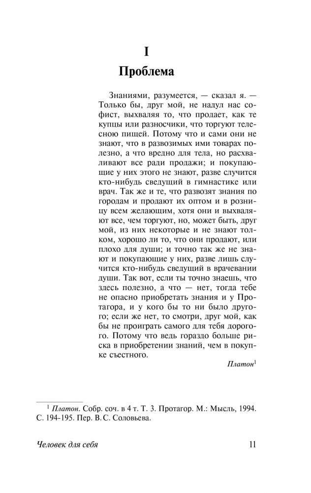 В работе «Человек для себя» Эрих Фромм рассматривает предназначение человека в современном мире, освободившем его от тяжелого физического труда. Развивая материальную культуру, человечество получило власть над природой, однако при всех своих знаниях о материи человек остался невежественен в самых важных, основополагающих вопросах человеческого бытия: что такое человек, как он должен жить и куда он может направить ту огромную энергию, что заключена в нем самом?