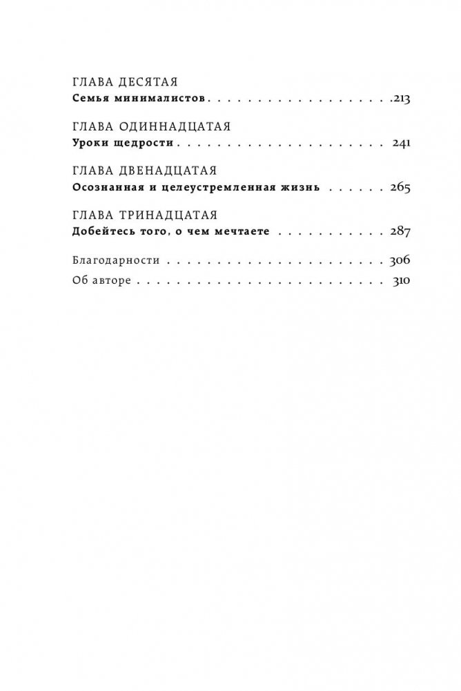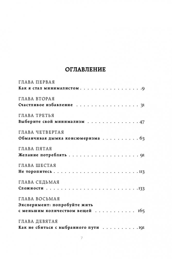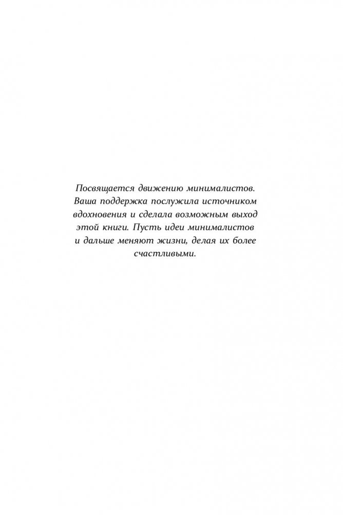 ЧЕМ МЕНЬШЕ ВЕЩЕЙ МЫ ИМЕЕМ, ТЕМ СЧАСТЛИВЕЕ СТАНОВИМСЯ. Мы мечтаем о дорогой машине, жаждем дизайнерской одежды, хотим много тратить и жить красиво. Но погоня за новыми вещами приводит лишь к забитым шкафам, захламленным квартирам и постоянно растущему желанию обладать большим. Так почему бы не избавиться от лишнего в пользу осознанной и счастливой жизни? Минимализм поможет вам: • освободить пространство и найти в нем себя, • научиться противостоять уловкам рекламы и накопить денег на мечту, • обрести свободу и возможность жить так, как вы всегда хотели, • перестать суетиться по пустякам, • наслаждаться роскошью простоты.