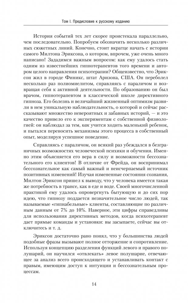 Данная книга представляет собой неповторимый продукт сотрудничества настоящих магов психотерапии и гипноза, основоположников нейролингвистического программирования - Джона Гриндера, Ричарда Бэндлера и Джудит Делозье. В ней анализируются гипнотические паттерны Милтона Эриксона, его уникальные терапевтические подходы и формы психотерапевтического вмешательства, его достижения в помощи другим людям обрести счастливую, полноценную и продуктивную жизнь, в результате чего его мастерство становится доступным всем, кто захочет им овладеть.
