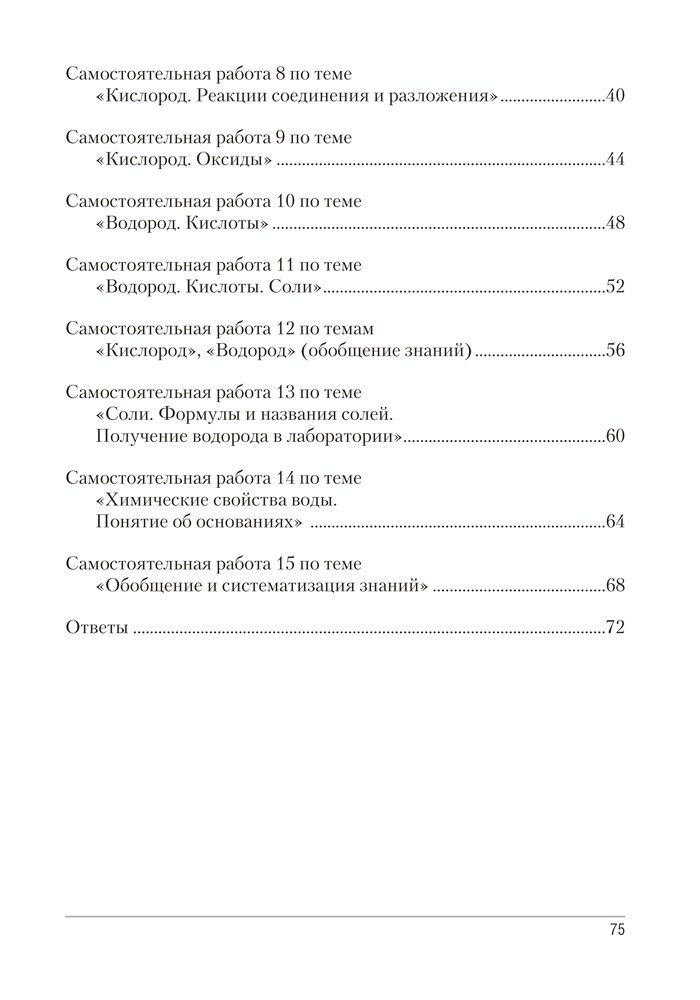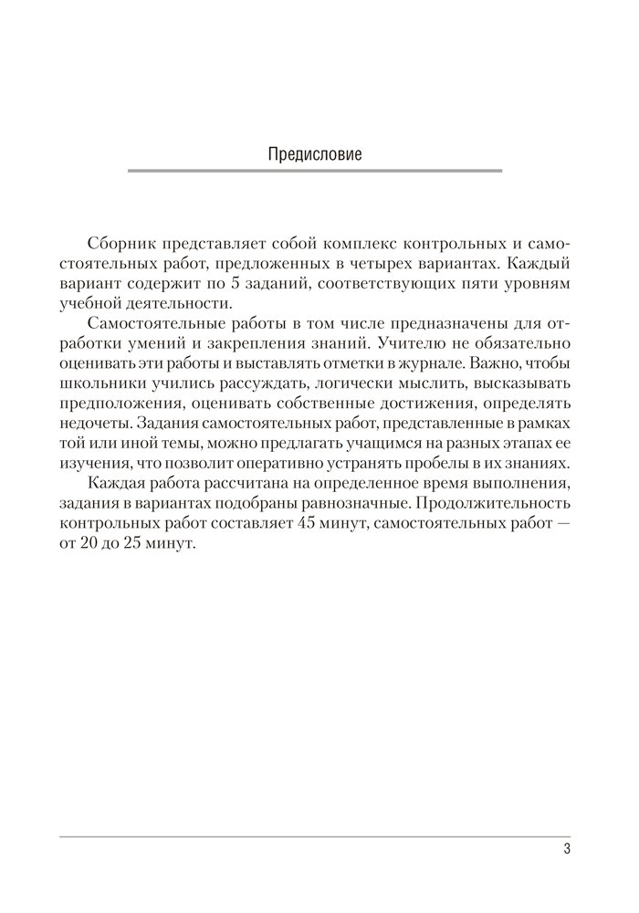 Сборник содержит контрольные и самостоятельные работы по химии для 7 класса, представленные в четырех вариантах. Все варианты включают разноуровневые задания, которые разработаны согласно нормам оценки результатов учебной деятельности учащихся.