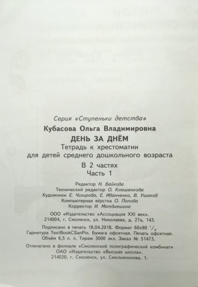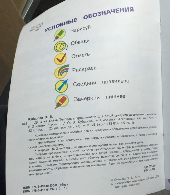Готовимся к школе. День за днём. Тетрадь к хрестоматии для детей среднего дошкольного возраста. Часть 1. ФГОС