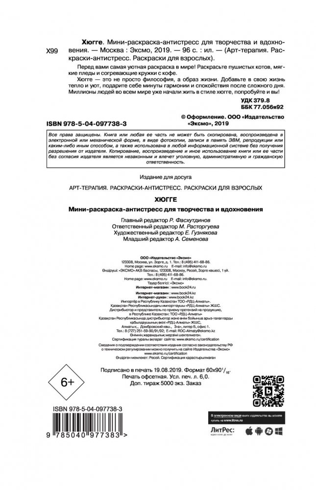 Перед вами самая уютная раскраска в мире! Раскрасьте пушистых котов, мягкие пледы и согревающие кружки с кофе. Хюгге - это не просто философия, а образ жизни. Добавьте в свою жизнь тепло и уют, подарите себе минуты гармонии и спокойствия после сложного дня. Миллионы людей во всем мире уже начали жить в стиле хюгге, попробуйте и вы!