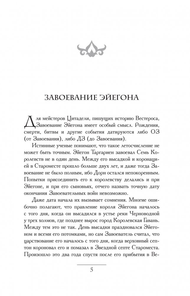 Тирион Ланнистер еще не стал заложником жестокого рока, Бран Старк еще не сделался калекой, а голова его отца Неда Старка еще не скатилась с эшафота. Ни один человек в Королевствах не смеет даже предположить, что Дейенерис Таргариен когда-нибудь назовут Матерью Драконов. Вестерос не привел к покорности соседние государства, и Железный Трон, который, согласно поговорке, ковался в крови и пламени, далеко еще не насытился. Древняя, как сам мир, история сходит со страниц ветхих манускриптов, и только мы, септоны, можем отделить правдивые события от жалких басен, и истину от клеветнических наветов. Присядьте же поближе к огню, добрые слушатели, и вы узнаете: – как Королевская Гавань стала столицей столиц, – как свершались славные подвиги, неподвластные воображению, – и как братья и сестры, отцы и матери теряли разум в кровавой борьбе за власть, – как драконье племя постепенно уступало место драконам в человеческом обличье, – а также и многие другие были и старины – смешные и невыразимо ужасные, бряцающие железом доспехов и играющие на песельных дудках, наполняющее наши сердца гордостью и печалью…