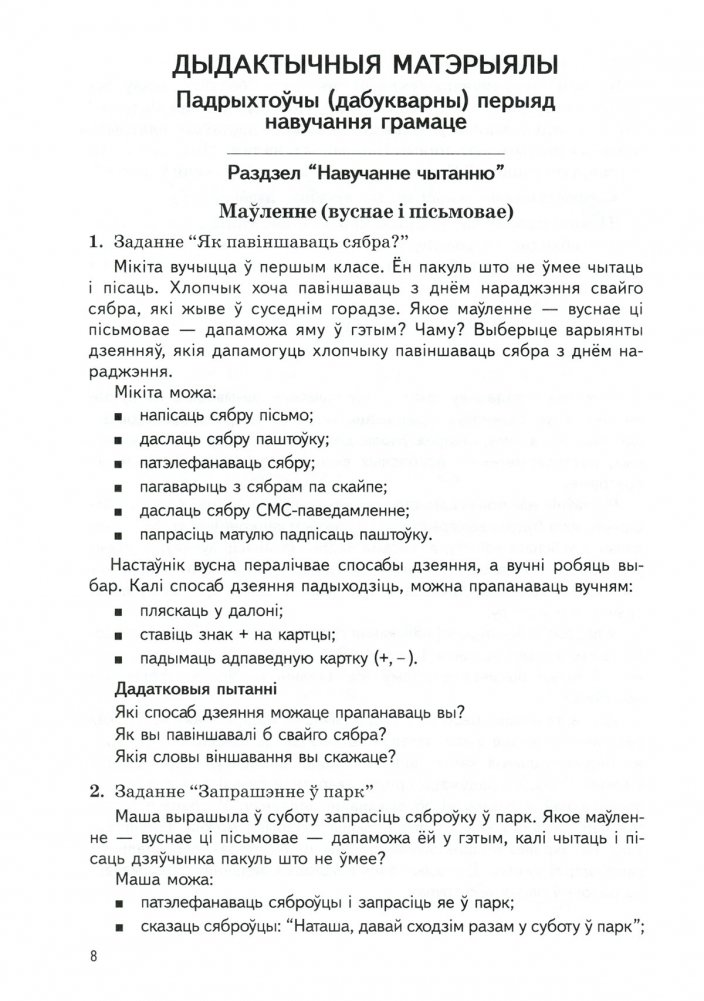 Дыдактычныя і дыягнастычныя матэрыялы — гэта дадатковы матэрыял да дзеючага ВМК па навучанні грамаце, які настаўнік можа выкарыстоўваць на ўроках, факультатыўных, стымулюючых занятках і ў пазакласнай рабоце.