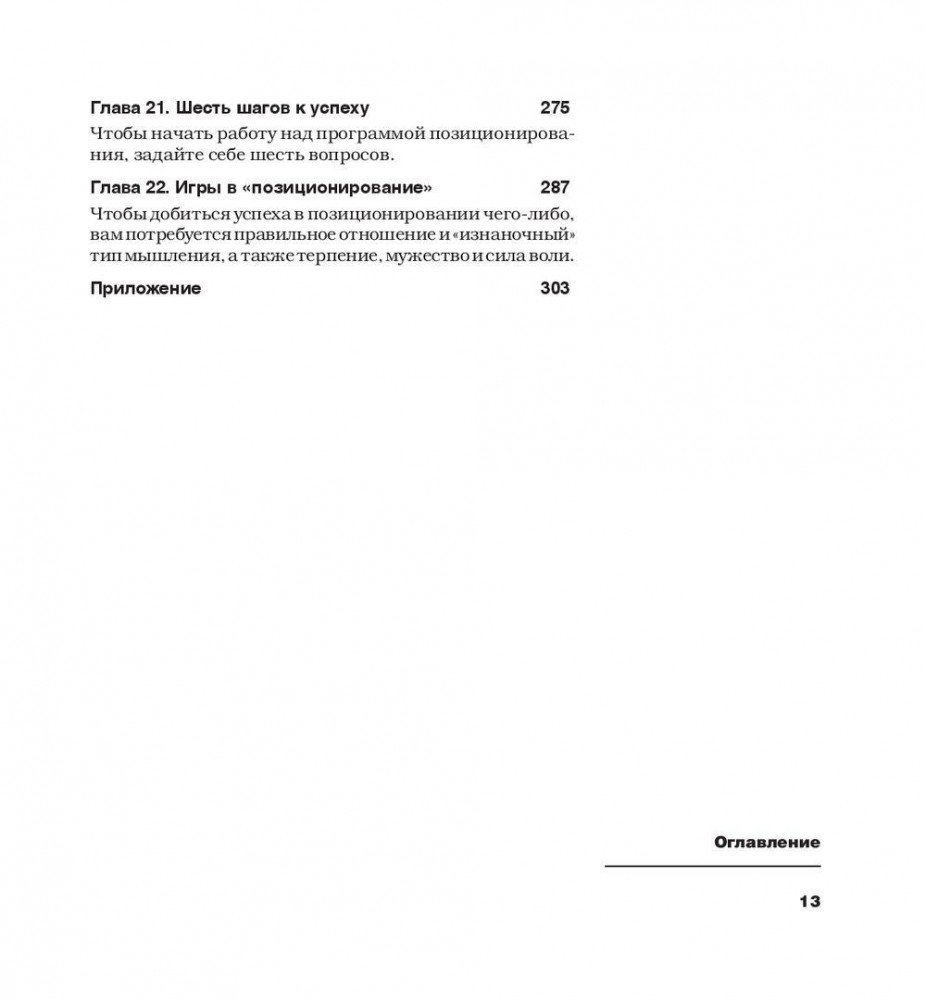 Концепция позиционирования — одна из самых популярных маркетинговых теорий в наши дни. Книга «Позиционирование: битва за умы», рассказывающая о ней и впервые изданная в 1980 году, потрясла деловой мир и навсегда изменила правила маркетинга, одновременно став мировым бестселлером во многих странах мира и настольной книгой для специалистов по маркетингу, рекламе, а также для руководителей компаний, желающих быть победителями в конкурентной борьбе. Новейшее издание книги дополнено авторскими комментариями, в которых анализируются феноменальные успехи и грандиозные маркетинговые провалы трех последних десятилетий, а также кейсами из практики рекламы и маркетинга в России, написанными по согласованию с Джеком Траутом российскими представителями компании Trout&Partners.