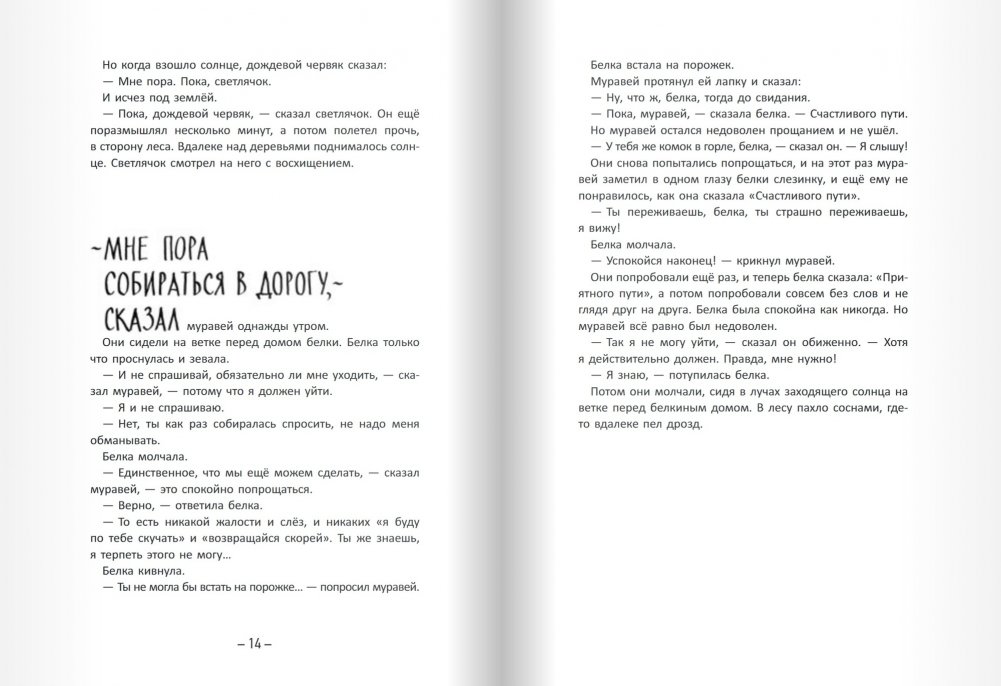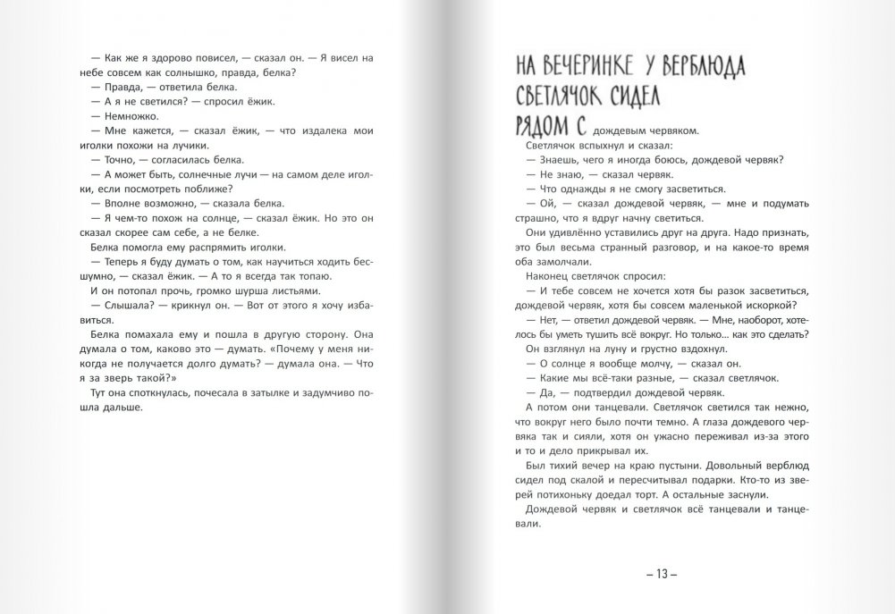 Белка отправляет муравью письма с ветром-почтальоном, слон раскачивается на лампе, медведь мечтает о тортах, муравей всё время собирается в дальнее путешествие, черепаха не уверена, что она черепаха, лягушонок и кузнечик соревнуются в прыжках в высоту, а цапля никак не может упасть…