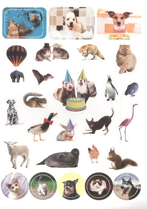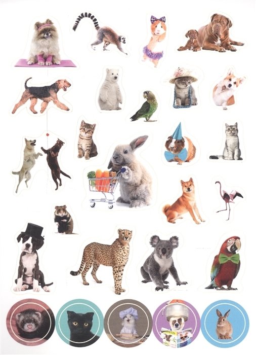 В брошюре "Забавные животные" вы найдёте милых зверят, которых любят все малыши. Есть наклейки с кошками, собаками, кроликами, хорьками и многими другими. Все наклейки хорошо отклеиваются от основы, поэтому с ними сможет играть даже маленький ребёнок.