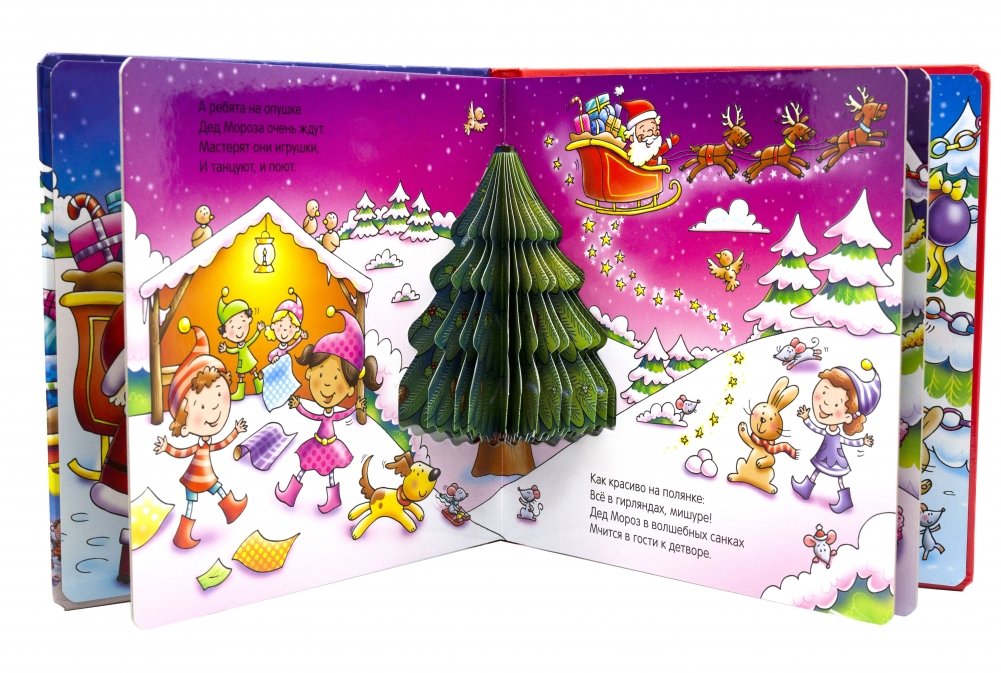 Замечательная новогодняя книга большого формата станет отличным подарком для каждого ребёнка! Обложка книги украшена блёстками, а внутри – объемная елка. Страницы выполнены из плотного картона. Трогательные стихи, написанные простым доступным языком, расскажут о том, как Дед Мороз отправился в гости к детям и как ребята готовились к наступлению любимого праздника. Новогодняя история порадует и родителей, и маленьких читателей!