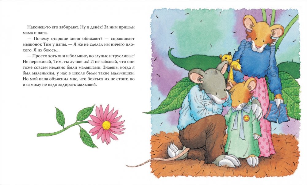 Серия книг про смешного и обаятельного мышонка Тима поможет малышам понимать, признавать и называть свои чувства, научиться общаться со сверстниками и справляться с трудными ситуациями. Мышонок Тим еще маленький и многого боится: темноты, старших детей, которые его задирают, плавать в бассейне и даже грозы. Но мама и папа расскажут ему, как не бояться.