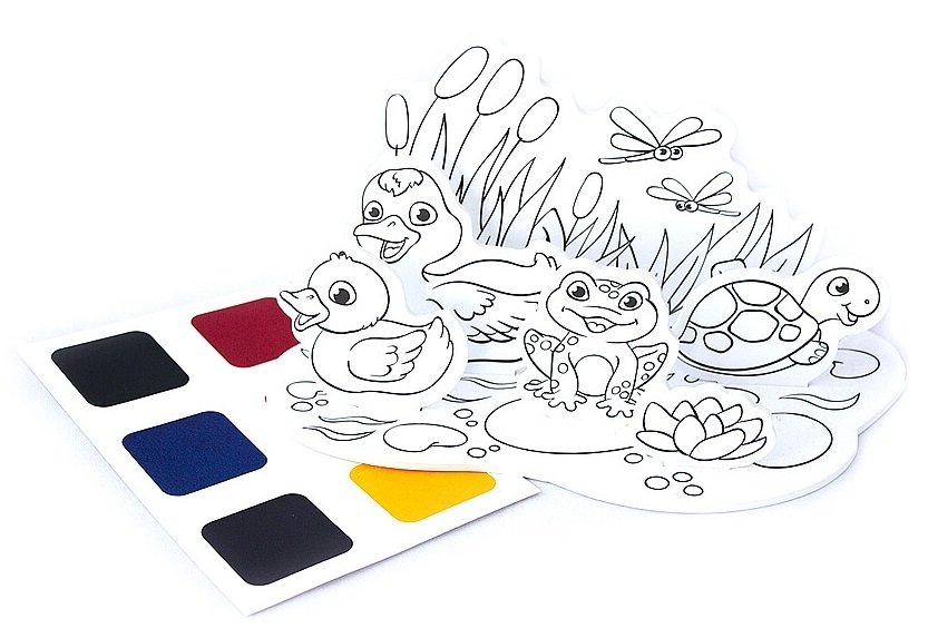 Это не просто раскраска, а ещё и конструктор. Предлагаем ребёнку перед сборкой самостоятельно выбрать цвет, раскрасить все детали и собрать свой маленький пруд с уточками, камышами, стрекозами и лягушками.