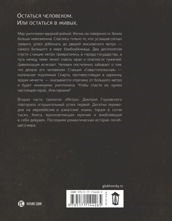 Мир уничтожен ядерной войной. Жизнь на поверхности Земли больше невозможна. Спаслись только те, кто, услышав сигнал тревоги, успел добежать до дверей московского метро - самого большого в мире бомбоубежища. Два десятилетия спустя станции метро превратились в города-государства, а путь между ними лежит сквозь мрак и опасности туннелей. Цивилизация исчезает. Человек постепенно забывает о том, что делало его человеком. Станция Севастопольская - маленькая подземная Спарта, противостоящая в одиночку ордам нечисти - оказывается отрезана от большого метро и будет неминуемо уничтожена. Чтобы спасти ее, нужен настоящий герой... Или героиня?