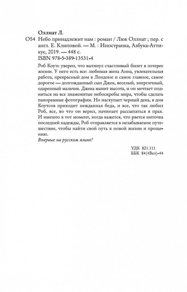 Роб Коутс уверен, что вытянул счастливый билет в лотерее жизни. У него есть все: любимая жена Анна, увлекательная работа, прекрасный дом в Лондоне и самое главное, самое дорогое — долгожданный сын Джек, веселый, энергичный, одаренный мальчик. Джека манит высота, и он мечтает подняться на все знаменитые небоскребы мира, чтобы сделать панорамные фотографии. Но наступает черный день, в дом Коутсов приходит нежданная беда, и все, что так любил Роб, все, во что он верил, начинает рассыпаться в прах. И именно в тот момент, когда кажется, что рвется ниточка последней надежды, Роб отправляется в незабываемое путешествие, чтобы найти свой путь к новой жизни и прощению.