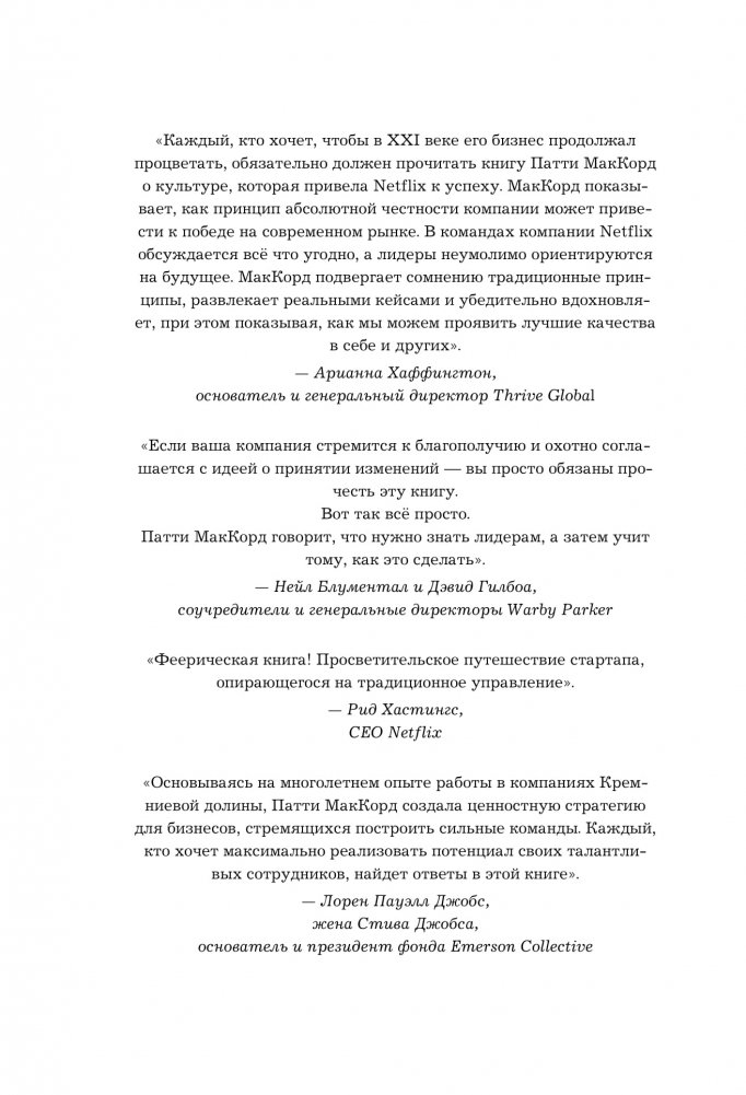 Мощные практические инструменты от Netflix. С их помощью можно построить высокоэффективную команду, которой не будет равных на рынке. МакКорд прописала принципы радикальной честности на работе, которые помогут отсеять неэффективных сотрудников и мотивировать лучших.