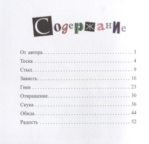 Гжегож Касдепке с присущим ему чувством юмора рассказывает о таких эмоциях, как стыд, тоска, зависть, гнев, отвращение, скука, обида. Автор учит детей (а вместе с ними и взрослых) тому, что испытывать негативные эмоции — это нормально. С каждой из них нужно учиться справляться и не испытывать чувства вины, проявляя их.