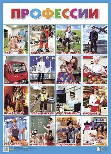 Плакат познакомит детей с наиболее распространенными профессиями.