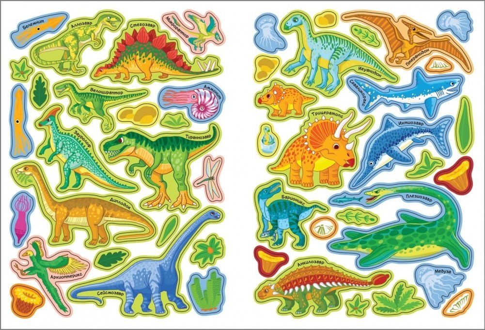 Добро пожаловать в удивительный мир динозавров! Играя с этой книжкой, малыш узнает много нового, потренирует мелкую моторику и разовьет воображение. Чтобы выполнить игровое задание, ребенку необходимо найти нужные наклейки и приклеить их на панорамную картинку. Многоразовые наклейки можно переклеивать сколько угодно раз!