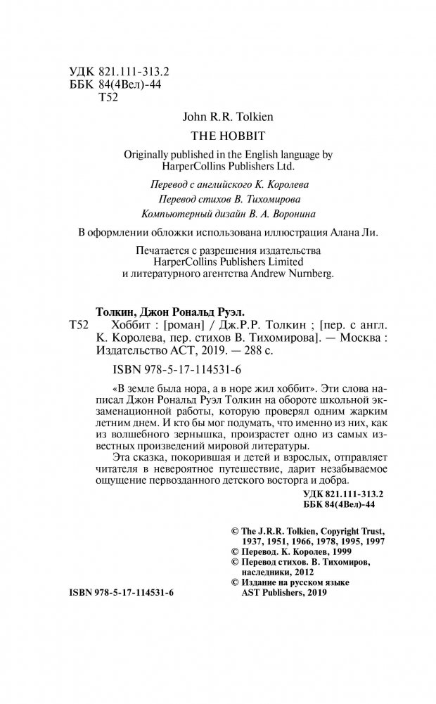 "В земле была нора, а в норе жил хоббит". Эти слова написал Джон Рональд Руэл Толкин на обороте школьной экзаменационной работы, которую проверял одним жарким летним днем. И кто бы мог подумать, что именно из них, как из волшебного зернышка, произрастет одно из самых известных произведений мировой литературы. Это сказка, покорившая и детей, и взрослых, отправляет читателя в невероятное путешествие, дарит незабываемое ощущение первозданного детского восторга и добра.