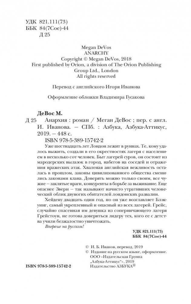 Уже шестнадцать лет Лондон лежит в руинах. Те, кому удалось выжить, создали в его окрестностях лагеря с населением в несколько сот человек. Быт лагерей суров, он состоит из мародерских вылазок в город, набегов на соседей и отражения вражеских атак. Хваленая английская вежливость осталась в прошлом, законы цивилизованного общества сменились законами клана. Доверять можно только своим, все чужие — заклятые враги, конкуренты в борьбе за выживание. Еще опаснее Звери — так называют начисто утративших человеческий облик двуногих обитателей лондонских развалин.