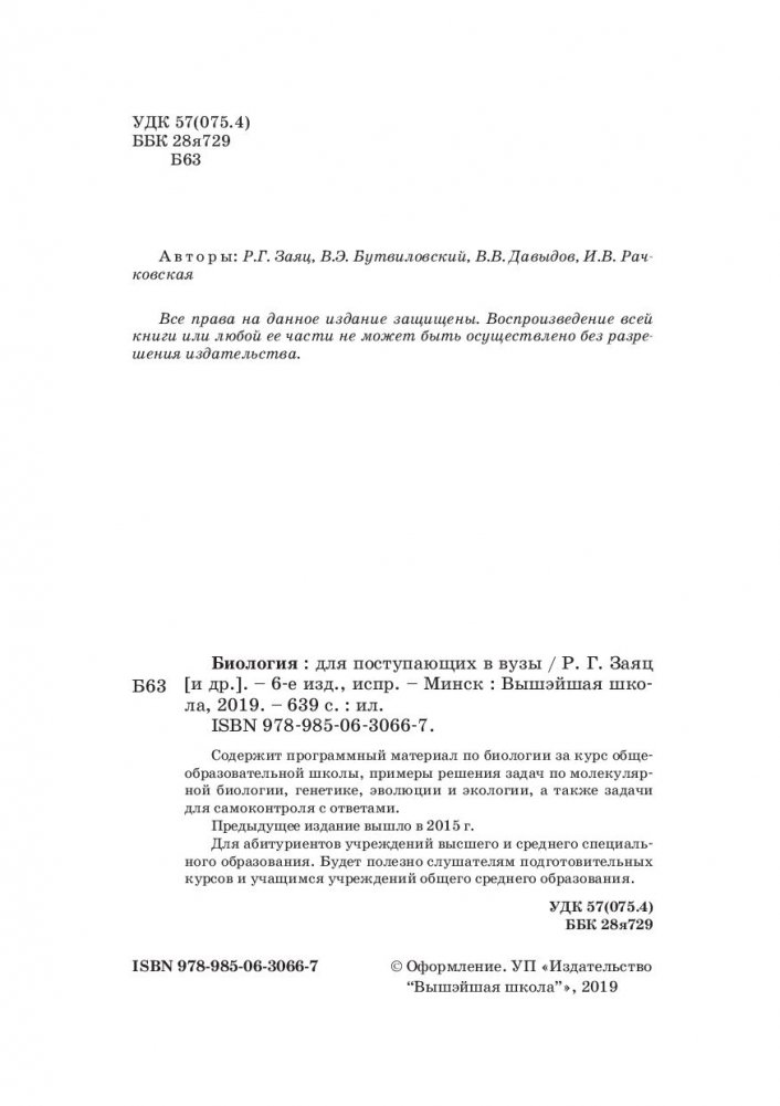 Содержит программный материал по биологии за курс общеобразовательной школы, примеры решения задач по молекулярной биологии, генетике, эволюции и экологии, а также задачи для самоконтроля с ответами.