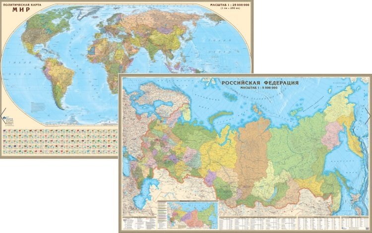 Двусторонняя карта "Мир и Российская Федерация", 160x100 см