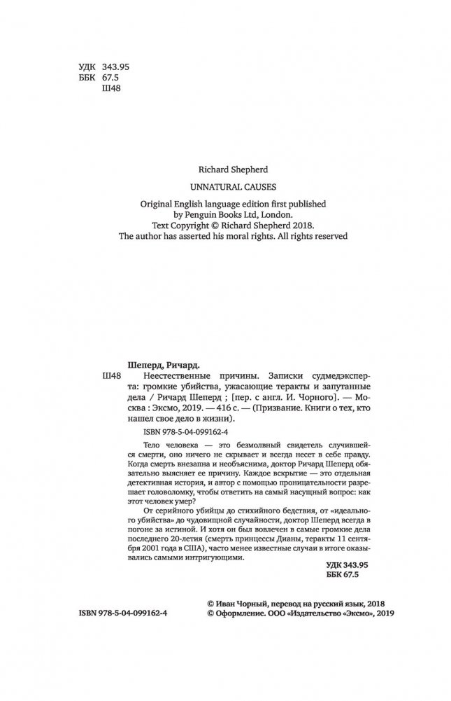 Когда смерть внезапна и необъяснима, доктор Ричард Шеперд обязательно выясняет ее причину. Каждое вскрытие – это отдельная детективная история, и автор с помощью проницательности разрешает головоломку, чтобы ответить на самый насущный вопрос: как этот человек умер?