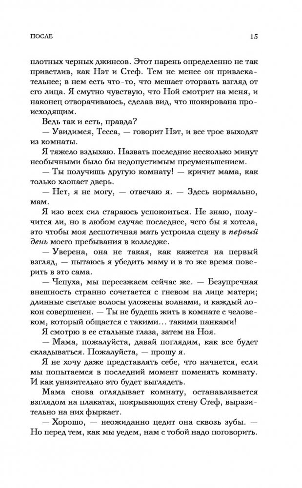 Тесса была тихой и примерной девочкой. Пока не встретила Хардина – чертовски привлекательного, по-настоящему плохого парня, которому плевать на все правила. Между ними промелькнула не просто искра, это был мощный электрический разряд. Так их жизнь навсегда разделилась на до и после…