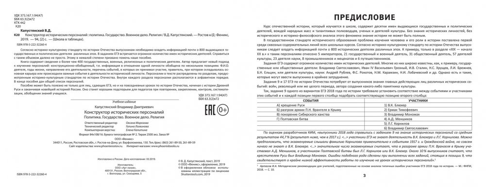 Согласно историко-культурному стандарту по истории Отечества выпускникам необходимо владеть информацией почти о 800 выдающихся государственных и политических деятелях различных эпох. В заданиях ЕГЭ встречается огромное количество имен исторических деятелей. Справиться с таким объемом далеко не просто. Этому в немалой степени призвано помочь наше пособие.