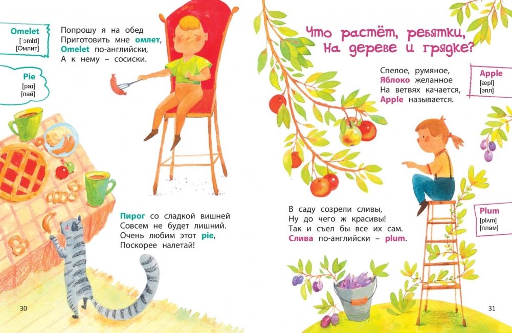 Книга поможет вам легко и в игровой форме познакомить малыша с первыми английскими словами. Под её обложкой – всё, что так любят дети: весёлые стихи и яркие картинки. В помощь родителям для каждого английского слова даны две транскрипции – классическая (написана с помощью международных знаков) и практическая (написанная с помощью русских букв, как это принято в разговорниках).