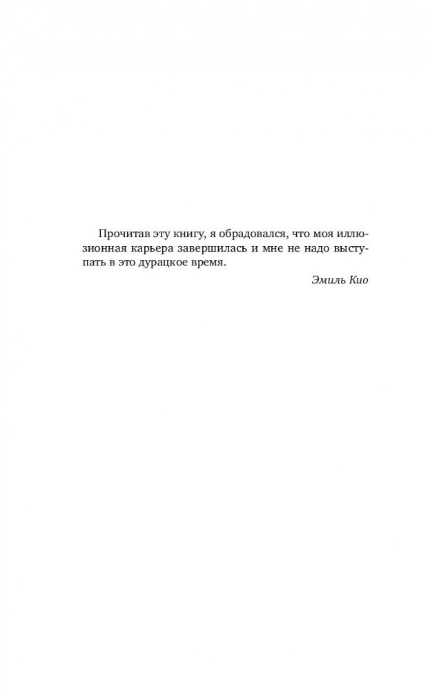 В книге представлены наблюдения из жизни артистов, размышления на профессиональные темы. Вы узнаете, как становятся фокусниками, зачем иллюзионисты переодеваются в форму охранников, как используют свои навыки в жизни и до чего может довести писающий кролик.