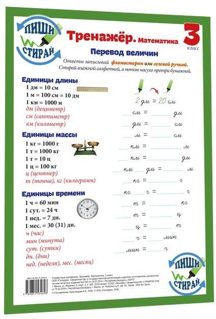 Справочные материалы: Тренажёр. Математика. 3 класс