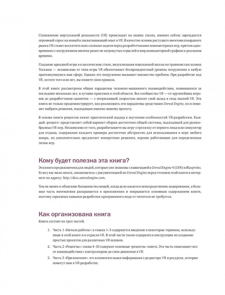 VR – новый, удивительный рубеж для разработчиков игр и специалистов по визуализации. А Unreal® Engine 4 – идеальная платформа для этого. «Unreal® Engine VR для разработчиков» – это исчерпывающее руководство по созданию потрясающих приложений на любых VR-устройствах, совместимых с Unreal Engine 4.