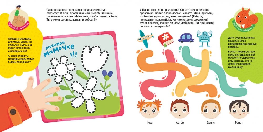 Начало для исследования и игры. При рассматривании иллюстраций, чтении, выполнении заданий обязательно давайте ребёнку в руки игрушки или предметы, играйте с ним, разыгрывайте ситуации.