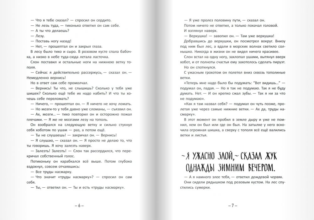 Жук объясняет сверчку, как правильно злиться, креветка пытается продать мыши сердитость, землеройка устраивает погром у белки, бегемот и носорог делят узкую тропинку, жаба-чесночница держит в страхе весь лес, а белка выясняет, почему трубкозуба ни в коем случае нельзя ставить на ноги…