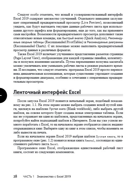 Если электронные таблицы стали неотъемлемой частью вашей жизни, то вам просто не обойтись без Microsoft Excel. В данной книге описаны все новинки Excel 2019. Здесь вы найдете всю необходимую информацию независимо от того, являетесь ли вы новичком в мире электронных таблиц или переходите с более ранней версии Excel. Вы научитесь форматировать ячейки, вводить формулы, строить диаграммы, добавлять гиперссылки на рабочие листы, создавать сводные таблицы и многое другое.