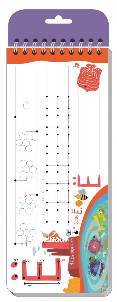 Малыш начнёт с простых заданий. Будет писать по стрелочкам отдельные элементы букв. Постепенно научится писать буквы целиком, сможет находить их в словах. Яркие запоминающиеся картинки-образы стимулируют запоминание.